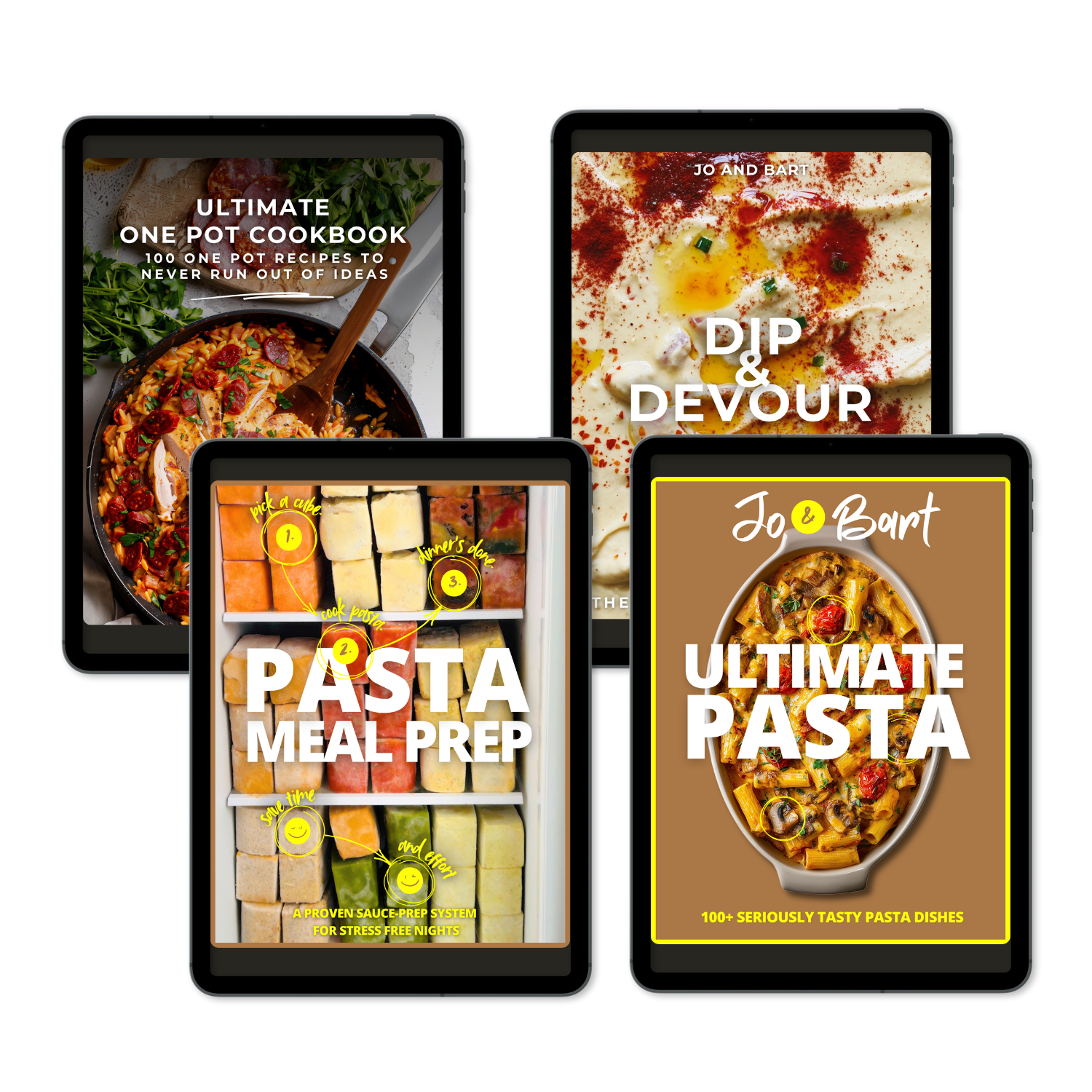 As a new mother, I’ve struggled to come up with interesting and delicious meals every night for my husband and family. It was becoming increasingly hard to find recipes that were relatively fast, delicious, and easy to make. But Jo and Bart’s cookbooks are really phenomenal in all 3 regards! I’ve tried almost all of the recipes in the Pasta cookbook and can’t wait to try the ones in the One Pot cookbook, too.. There is truly something for everyone. You can choose to do some of the simpler recipes or try some of the harder ones when you have more energy. The best part is that my husband recently complimented me and said “hey, your cooking is getting so much better!” Yay!! Thanks Jo and Bart!! You guys are awesome!!!